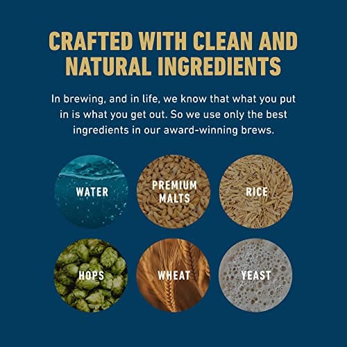 - Six Clean Ingredients: Pure and all-natural. Made with premium malt, rice, wheat, water, hops, and yeast. That's it.