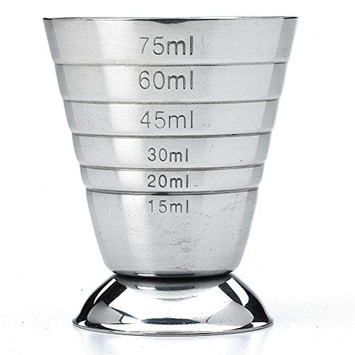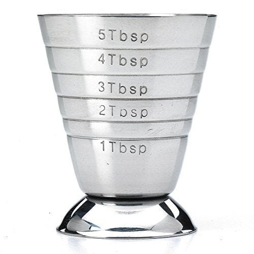 - INCLUDES: Stainless steel bar measuring cup, 2.5 oz/5 Tbsp/75 ml capacity