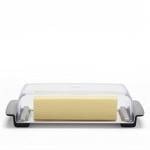 - Stoppers on either side of Dish keep butter in place while cutting