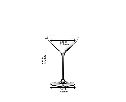 Details: The diamond-shaped machine-made martini glass of the eye-catching glass collection extreme is the essential glassware for every home bar. The steeply rising sides of this glass best benefit The spirits of martini. The extreme glasses derive their name from their extreme contours. All Riedel glasses are dishwasher safe.