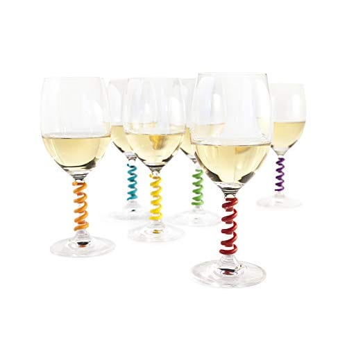 Details: Our springy silicone rainbow of Stem Springs™ Silicone Wine Charms wrap tight around the stem of any wine glass for easy wine identification and retrieval. Durable, stretchy and festive, you can use them to brighten party after party.Set of 6Food-safe siliconeFlexible & durable