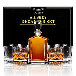 - ELIDOMC 5PC Italian Crafted Crystal Whiskey Decanter & Whiskey Glasses Set, Crystal Decanter Set With 4 Whiskey Glasses, Whiskey Decanter Sets for Men