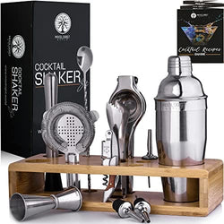 - Cocktail Shaker Set with Stand, SUPERSUN 15 Piece Bartender Kit Home Bar Accessories - Martini Shaker with Built-in Strainer, Muddler, Jigger, Drink Shaker 304 Stainless Steel