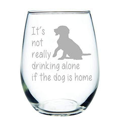 - C M It's not really drinking alone if the dog is home stemless wine glass, 15 oz. Perfect Dog Lover Gift for him or her (dog) - Laser Engraved