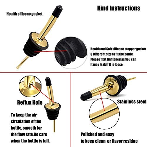 - Theses tapered design liquor spirit wine alcohol pourer offers control, accuracy, and the most perfectly consistent pour speed every time. When you use our liquor pour spouts you will experience less spillage and less mess