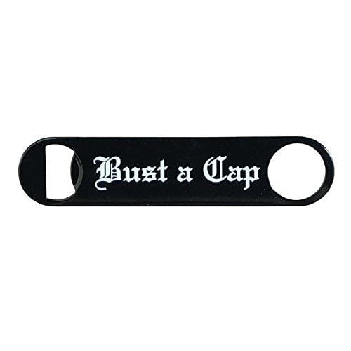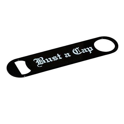 Details: This bottle opener is the only bottle opener you'll ever need. It opens beer and soda pop bottles faster than you can say "Bam!" The high quality steel construction and powder coated finish just adds a glimmer of sexy factor to your kitchen or man cave, wherever it is displayed. The slim design fits effortlessly into your pocket, and the spinner ring let's you rip this thing out faster than Emilio Estevez in Young Guns. Great for professional bartenders as well, which I'm sure you know already. Start popping bottles like a pro!