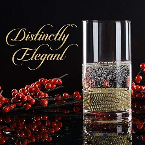 Embellished with sparkling, diamond-like rhinestones around the base, these highball glasses bring style and class to your parties, celebrations and special occasions. Entertain your guests and make them feel like royalty!
