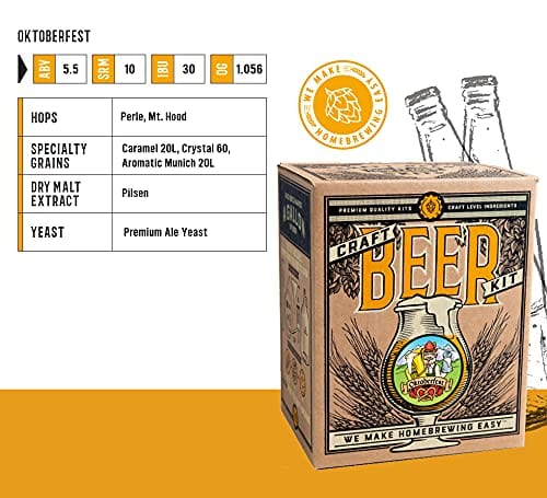 Details: With Craft a Brew, you get a home beer brewing kit designed for you. This beer making kit comes with everything you need to become a master brewer, including a 1-gallon carboy, funnel, racking cane, rubber stopper, transfer tubing and thumb clamp, airlock, thermometer, Guide to Craft Brewing, sanitizer, and our Oktoberfest Ale recipe kit. All the equipment is reusable, meaning you can enjoy other Craft a Brew fresh-packed ingredients with the same fantastic beer brewing starter kit!