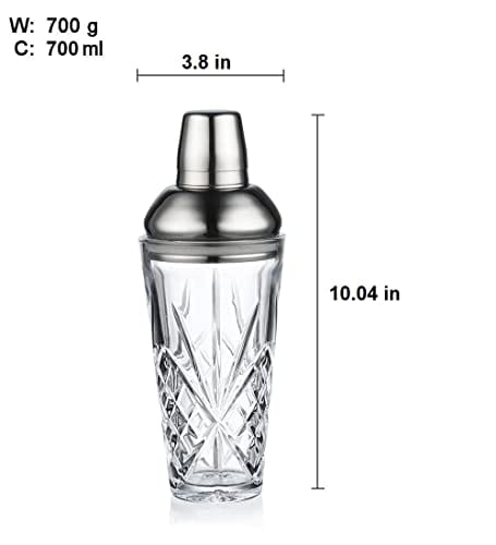 - What You Get: This set comes with 4 cocktail accessories that you can use to impress your family and friends with your bartending skills. The kit includes a luxurious crystal glass cocktail shaker, a spoon, a strainer, and a double-ended jigger.