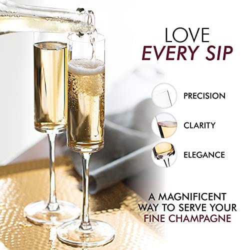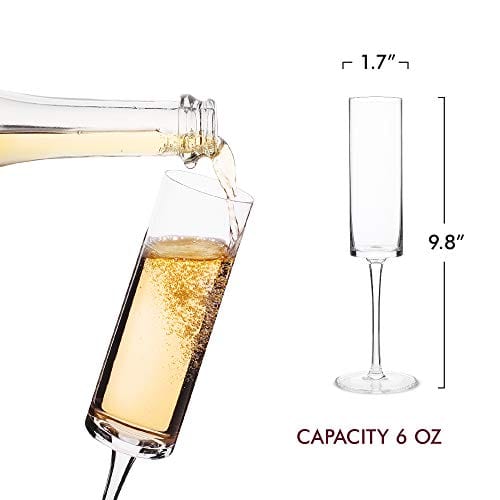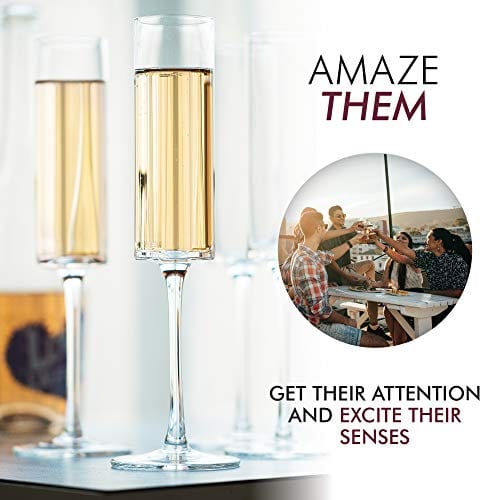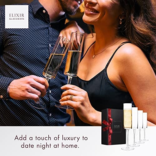 • ✔ BEAUTIFUL GLASSES TO FALL IN LOVE WITH – Pair the sensory delight of a fine champagne with the exquisite art form of these breathtaking glasses by Elixir Glassware. Contemporary, exceptionally clear cylindrical body and slender stem gracefully showcases your drink.