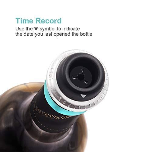 - Contains time recording function that will indicate when the wine bottle was last opened. Simply turn the ring on the stopper to select the time that you want it to display.