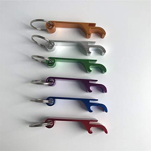 Details: Color: silver, green, red, purple, yellow, blue Material: aluminum Opener size: 6.5cm x 1.2cm / 2.5inch x 0.5 inch (LxW). Key ring diameter: 2.4cm/0.94 inch. Package Included: 6 pcs Bottle Opener