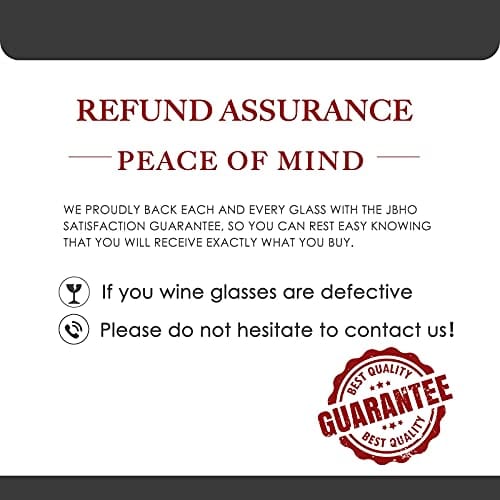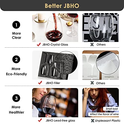 - 100% Hand Blown :These wine glasses are hand-blown using 23 procedures by experienced craft masters who boast more than 10 years experience in this field. Craftsmanship spirit makes JBHome glass unique and elegant.