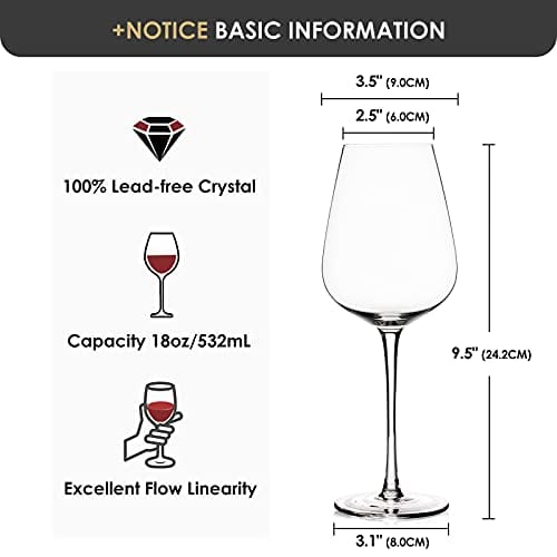 - Ultra Clear and Thin but Sturdy: Crystal Glass is perfectly clear and the ultra thin rim with cold cutting enhancing the perceived quality and flavor of any red/white wine. These red/white wine glasses are not too thick yet strong enough to stand daily washing.