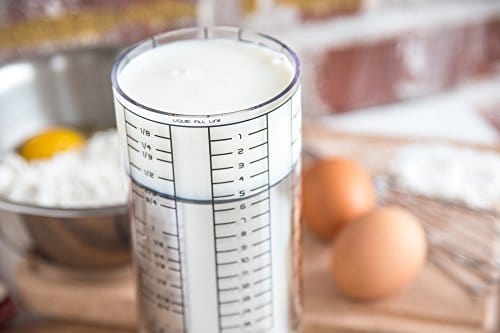 - Measures metric or standard for liquids, dry and semi-solid ingredients