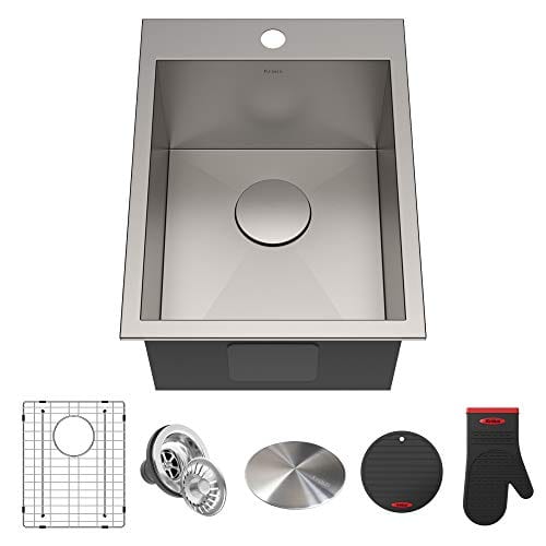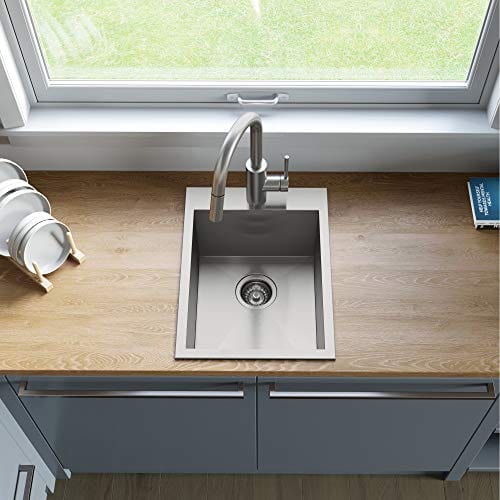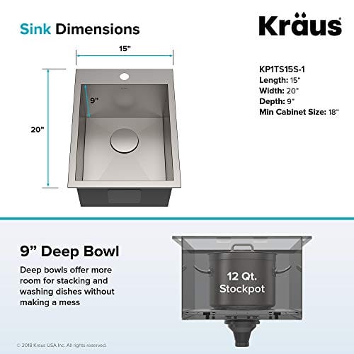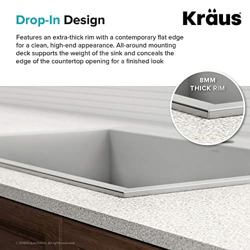 - DROP-IN DESIGN allows for top mount installation with any type of kitchen counter, from wood to stone to laminate; Minimum cabinet size required: 18 in.