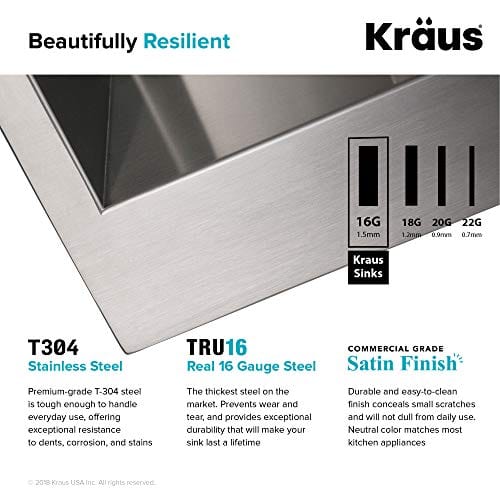 - DENT-RESISTANT SINK (15 in. x 20 in. x 9 3/8 in.) made with durable TRU16 real 16-gauge T304 stainless steel that will not dull from daily use – FULLY INSULATED with extra-thick pads to absorb noise and vibration