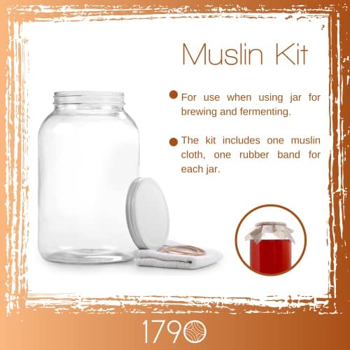 Details: Our Gallon Glass Jar 2PK comes with two Glass Jars, two airtight plastic lids, two rubber bands, and two 12"x12" muslin cloths. Just add the ingredients and you are ready to brew, ferment, store, or decorate whatever your heart desires!