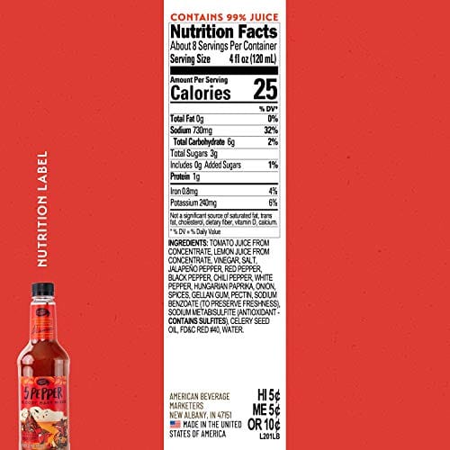 Details: Loaded with a unique blend of 5 savory peppers with pure lemon juice and juice from vine-ripened tomatoes. It's perfect for an extra spicy bloody mary!