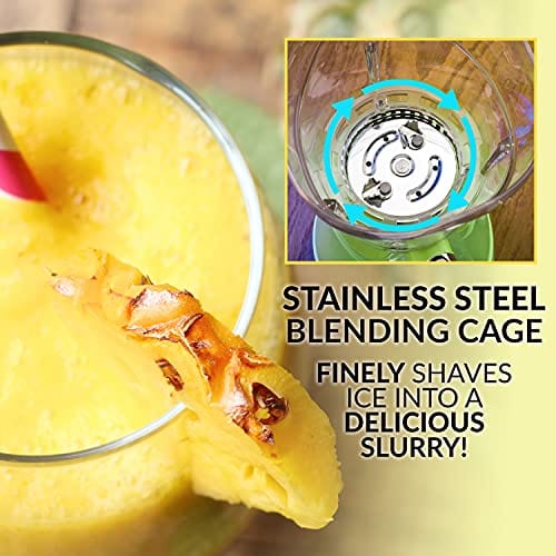 • Simple to use: Simply fill the chamber with regular sized ice cubes, add your favorite liquor, drink mix or fruit, place the lid on top and start blending