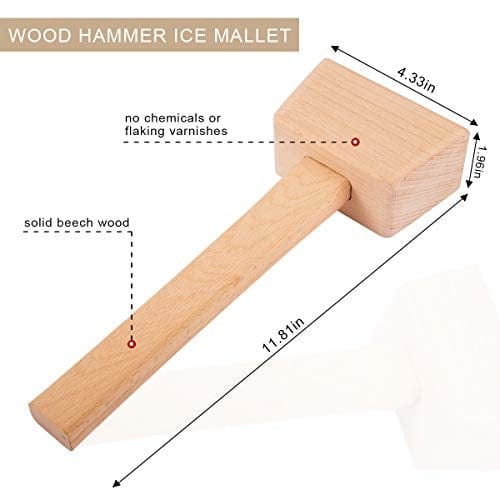Details: Do you want to make cool drinks for you and your family in hot summer? Need to make crushed ice but don't have ice blender? Need a cheap and fun ice crushing tool? Choosing our lewis ice bags and ice mallet gives you the best experience of making crushed ice. SpecificationMaterial: 100% cotton thick canvas, beech woodSize: lewis ice bags 15.35 × 8.66 inch, ice mallet 11.81 × 4.33 × 1.96 inchQuantity: 2 pieces of lewis ice bags and an ice malletWide ApplicationProfessional bartender kit is also a sweet gift for your friends who loves drinking and works in a bar. The ice crusher has other function, lewis ice canvas bag can be used as a storage bag and the mallet can be used in kitchen to handle ingredients. 2 pieces of canvas ice bags can help you make enough crushed ice even on a small party, making beautiful and delicious drinks by hand shows your skills of mixology to your friends. The lewis ice bag is made of 100% canvas, this material would absorb melted water to keep your crushed ice crisp. With this material, the soaked bag is easy to drying and don't have any strange smell. This crushing ice set is also a funny toy for your kids in summer, hitting the ice with a mallet can exercise their hands-on ability and make healthy juice. Have fun with your kids and enjoy your parent-child time.