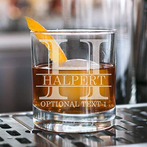 Personalized Etched Monogram 10.25oz Whiskey Rocks Glass | Halpert