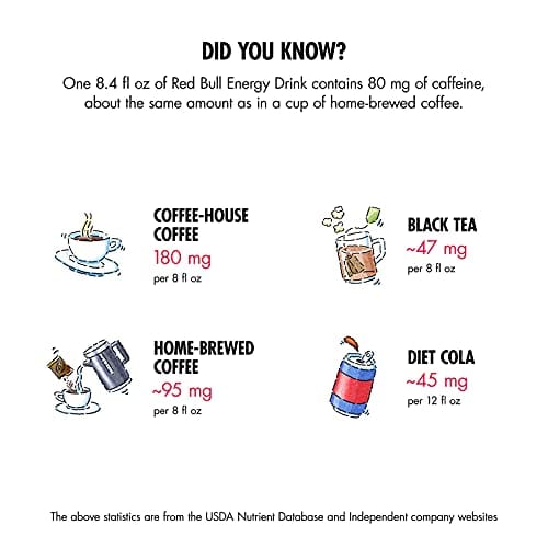 Details: Red Bull drink, tropical, 8.4 fl oz (24 Pack) Red Bull gives you Wings inspired by functional drinks from the far East, Dietrich mateschitz founded Red Bull in the mid-1980s. He developed a new product and a unique marketing concept and launched Red Bull drink on April 1, 1987 in Austria.&Nbsp; a brand new product category - Energy drinks - was born. When TO DRINK Red Bull is appreciated worldwide by top athletes, busy professionals, college students and travelers on long journeys. What's inside THE CAN Caffeine: caffeine was widely used by ancient civilizations. It was traditionally consumed from natural sources like tea, coffee, cacao beans and cola nuts and appreciated for its stimulating effects on the human body. B-group Vitamins: vitamins are essential micronutrients that are required for maintaining normal body functions. Sugars: Red Bull drink is made with real sugars. Taurine: Taurine is an amino acid, naturally occurring in the human body and present in the daily diet. It is involved in a wide range of biological processes. Always Check can labels for most updated product nutritional and ingredient Information. Some values declared on labels may vary slightly depending on production locations.