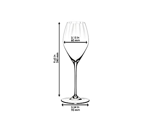 Details: The champagne wine glass is perfect for developing and displaying champagne’s complex characteristics. This glass allows the wide range of aromatics to unfold. Unlike a flute, The egg-shaped design allows the complex layers to grow and intensify, and the larger rim diameter enables them to be released in a way which is not achieved with a narrow glass. The glass also includes a 'sparkling point' To aid the formation of the Champagne bubbles. The optic impact in the Riedel performance Series adds both a design feature and an astounding effect on wine's aromatics. This pack contains two glasses. Machine-made and dishwasher safe.