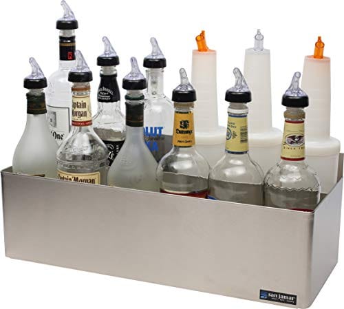 Details: Stainless speed racks professionally display bottles behind the bar. Steel speed racks allow to organize bottles permitting drinks to be served quickly and are available in single size units. Double speed racks offer strength and functionality for high volume use. Holds 10 quart/liter-bottles. Measures 21-1/8" width by 7-5/8" height by 8" depth.