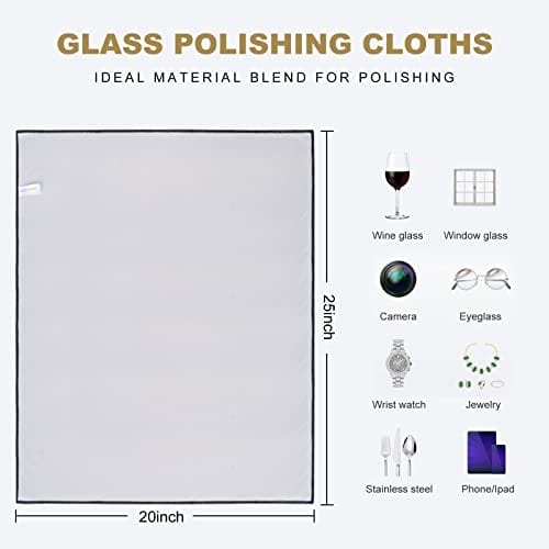 Details: Premium Quality Microfiber Cloth from SINLANDR This microfiber cloth is made from 80% polyester and 20% polyamide, with makes it soft, and yet very durable. Silky smooth textured microfiber polishes glassware with ease.Create brilliant shine and clarity in all you glass and stemware with this 4 Pack of microfiber polishing cloths.Versatile long lasting material that is machine washable.Countless Uses: Polish and dry glassware, stainless steel appliances, oven windows and doors, glass cabinetry and more, leaving no residue, scratches or fibers behind. Dimensions : XL (25 Inch x 20 Inch) Care instructions:Gentle machine wash, OR hand wash with warm water and soap.Do not use fabric softener or bleach.Do not use tumble dry or steam iron.