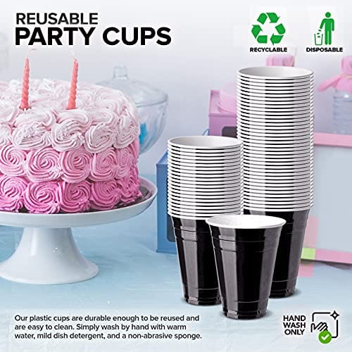 • Great Value Pack: Comes with 50 black cups with a 16oz capacity each. Measures approximately 4.82” Height x 3.88” Top Diameter x 2.38” Bottom Diameter.