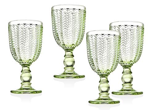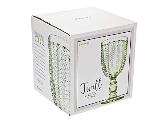 Details: Twill Red Wine Goblet Beverage Glass Cup by Godinger – Emerald Green – Set of 4.