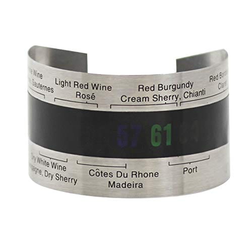 Details: The Vinturi V9075 wine bottle thermometer cuff shows your wine's temperature. Also suggests the best serving temperature for most wines. Chill to desired temperature and serve. Flexible band to fit a variety of wine bottles.