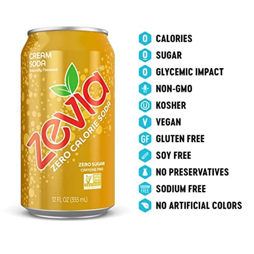 - Zevia Zero Calorie Cream Soda: Practically a dessert, this stevia sweetened diet soda has a delicious deep aroma and luscious creamy taste; Its hints of vanilla and butter that will satisfy any sweet tooth